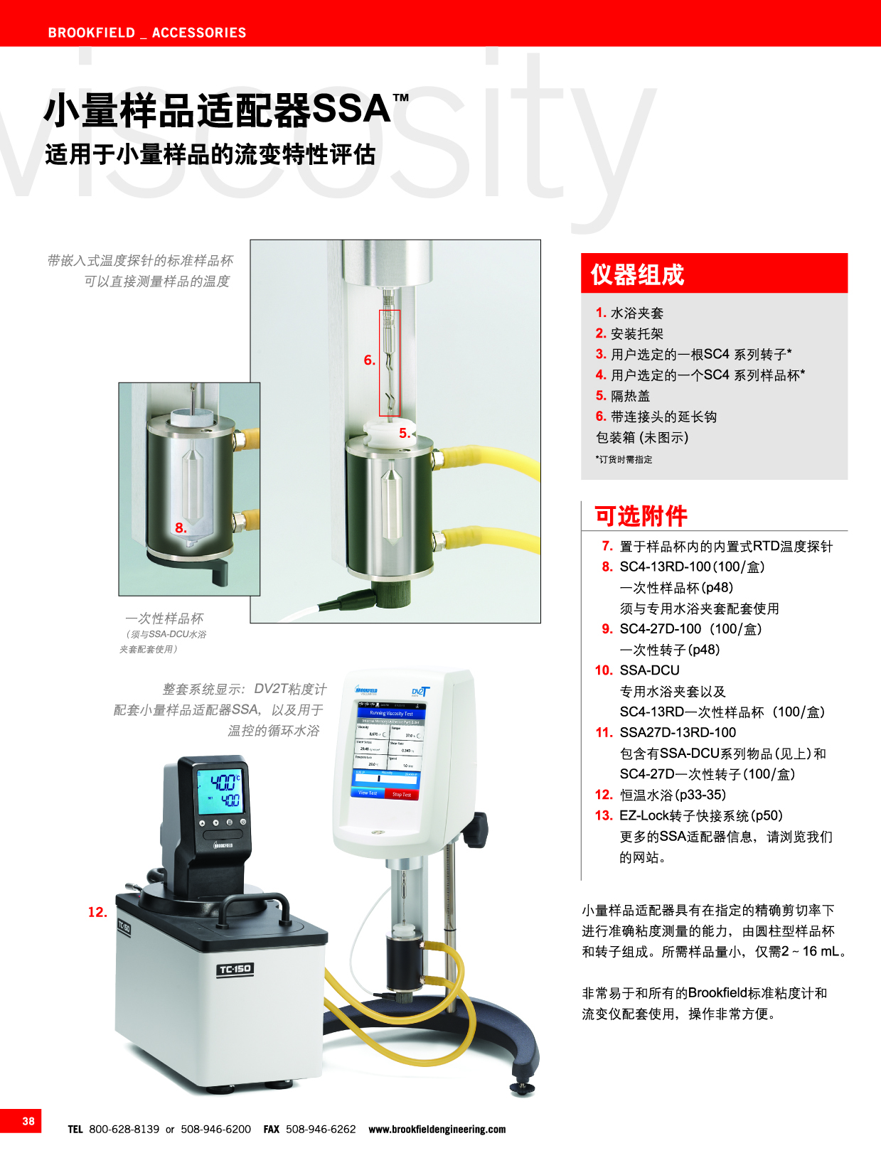 美国博勒飞Brookfield SSA小量样品适配器SMALL SAMPLE ADAPTER