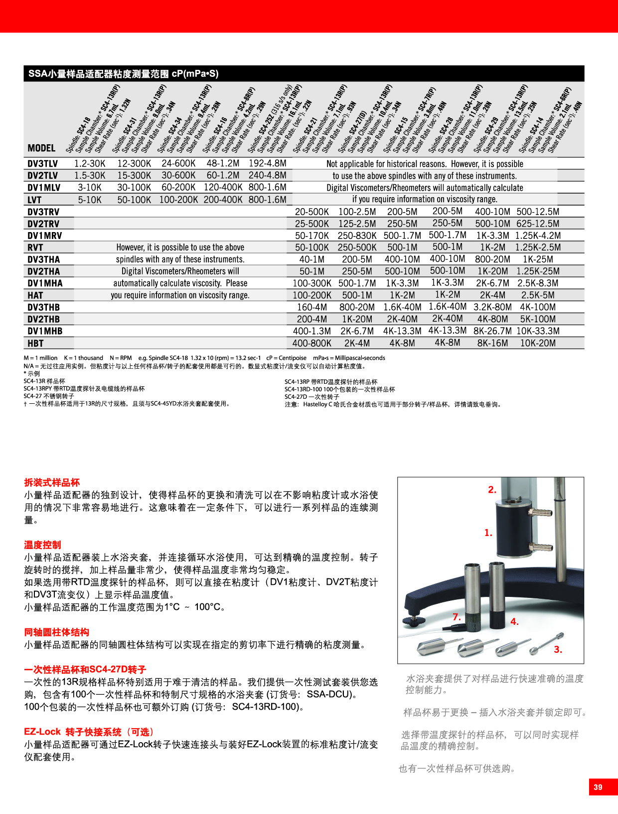 小量样品适配器由圆柱形的样品室和转子构成,可以在一定剪切率下进行测量,样品用量只需要2 到16ml。它可以用于Brookfield所有的标准粘度计和流变仪。