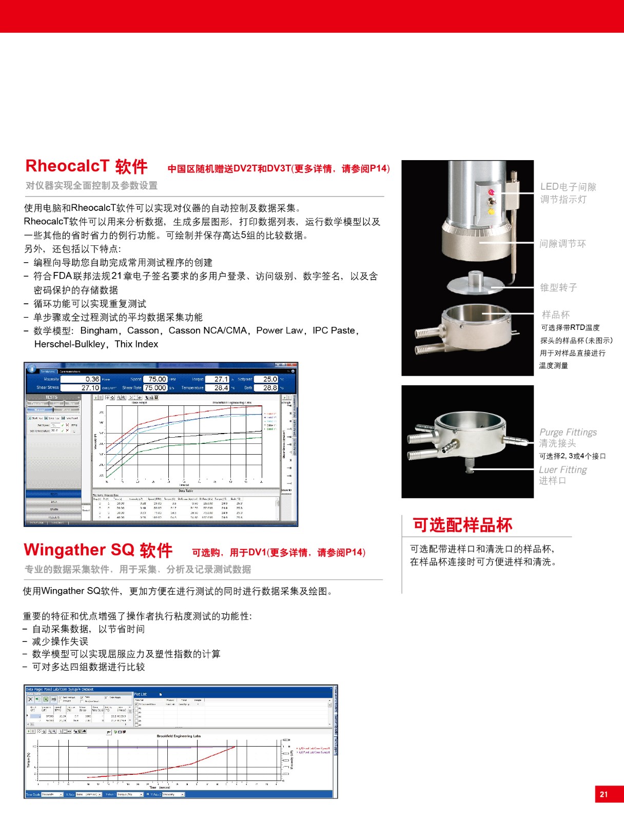 锥板粘度计可选购Rheocalc软件(DV3T及DV2T)及Wingather SQ(DV1)软件