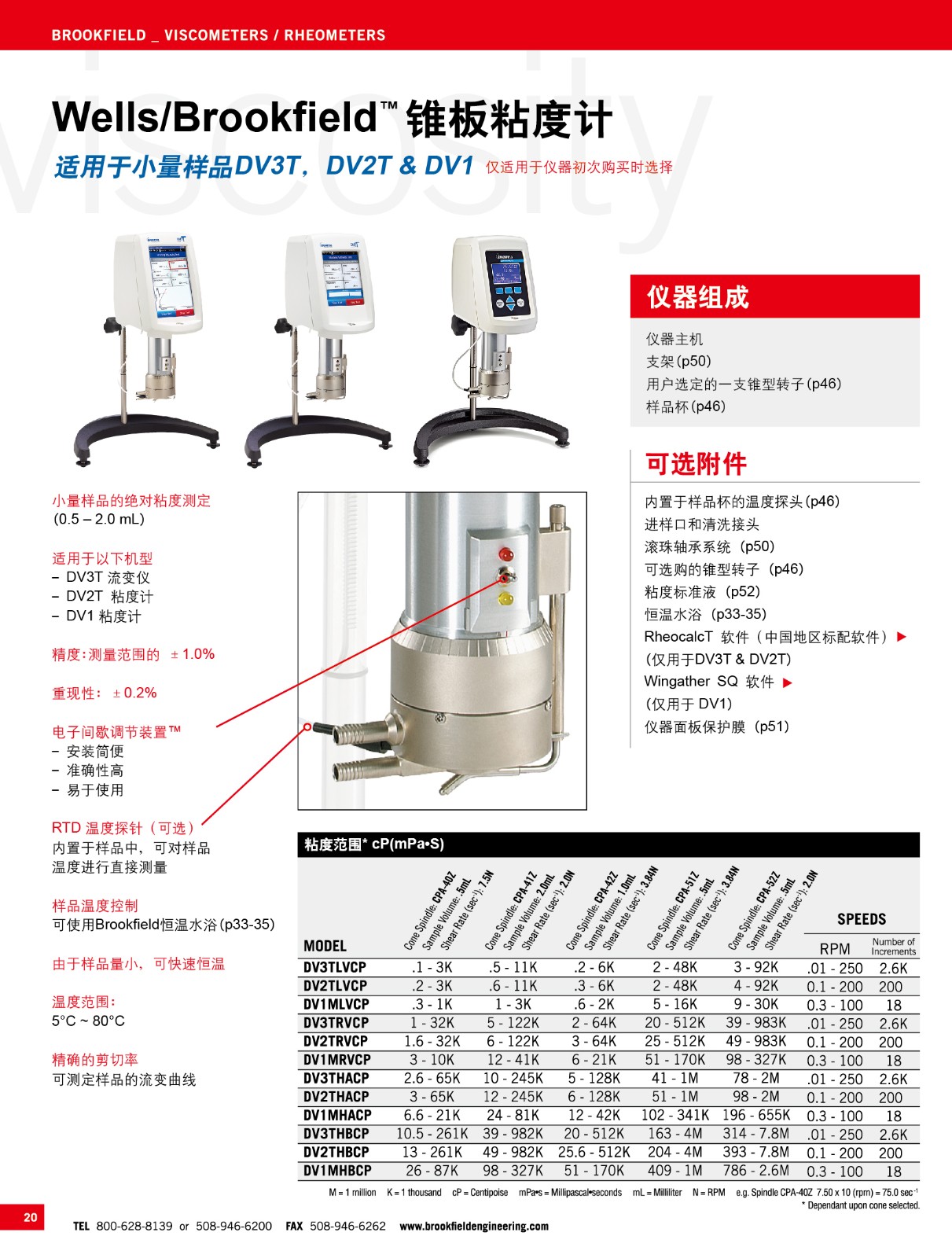 锥板粘度计,进口锥板粘度计,Brookfield锥板粘度计,博勒飞锥板粘度计、博勒飞粘度计独家代理:东南科仪。有DV3T CP流变仪,DV2T CP锥板粘度计和DV-1 CP锥板粘度计几种机型。