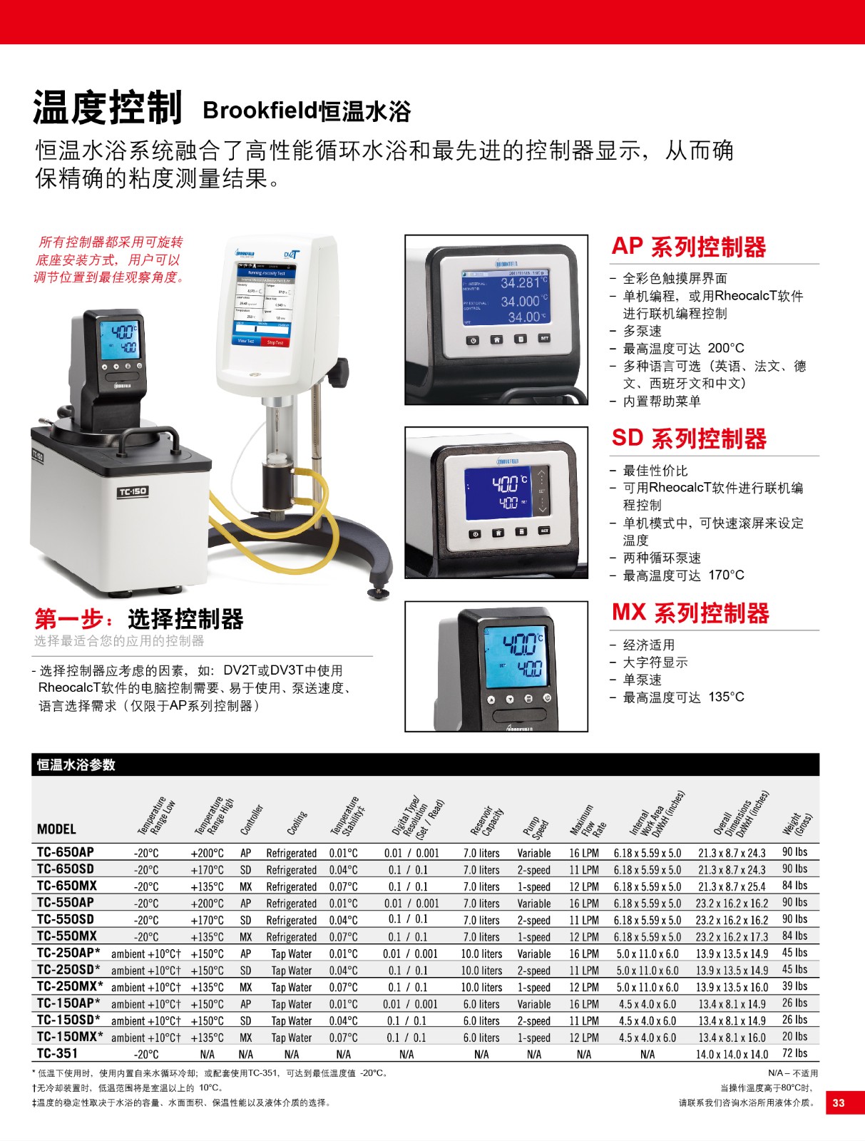 Brookfield TC-250系列恒温水浴,恒温水浴新型号恒温水浴有MX、SD、AP系列控制器可选的恒温水浴,博勒飞恒温水浴SD系列控制器性价比高,使用Rheocalc软件可与电脑编程控制,在独立模式下可快速达到设定温度,双速泵。Brookfield TC-250系列恒温水浴,恒温水浴新型号恒温水浴有MX、SD、AP系列控制器可选的恒温水浴